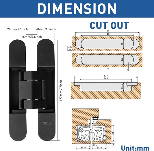 TamBee Hidden Hinges for Doors Invisible Cross Hinge